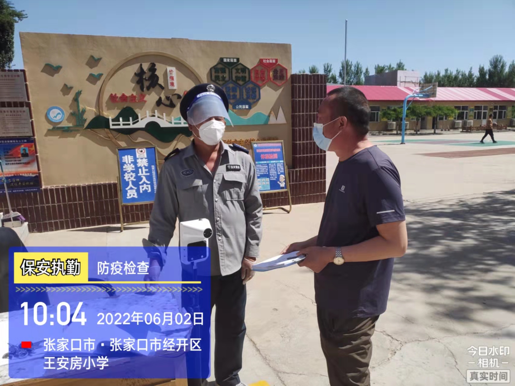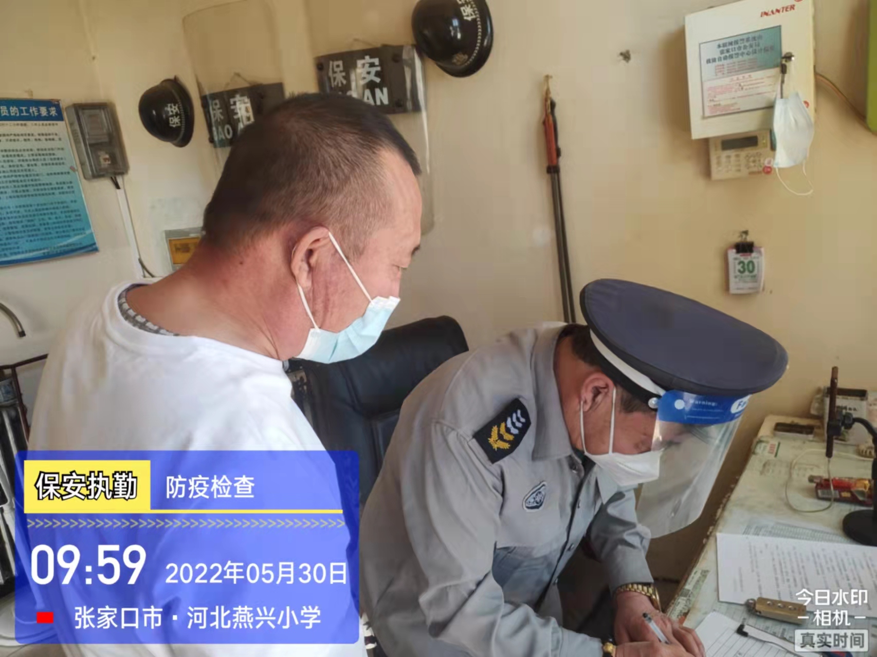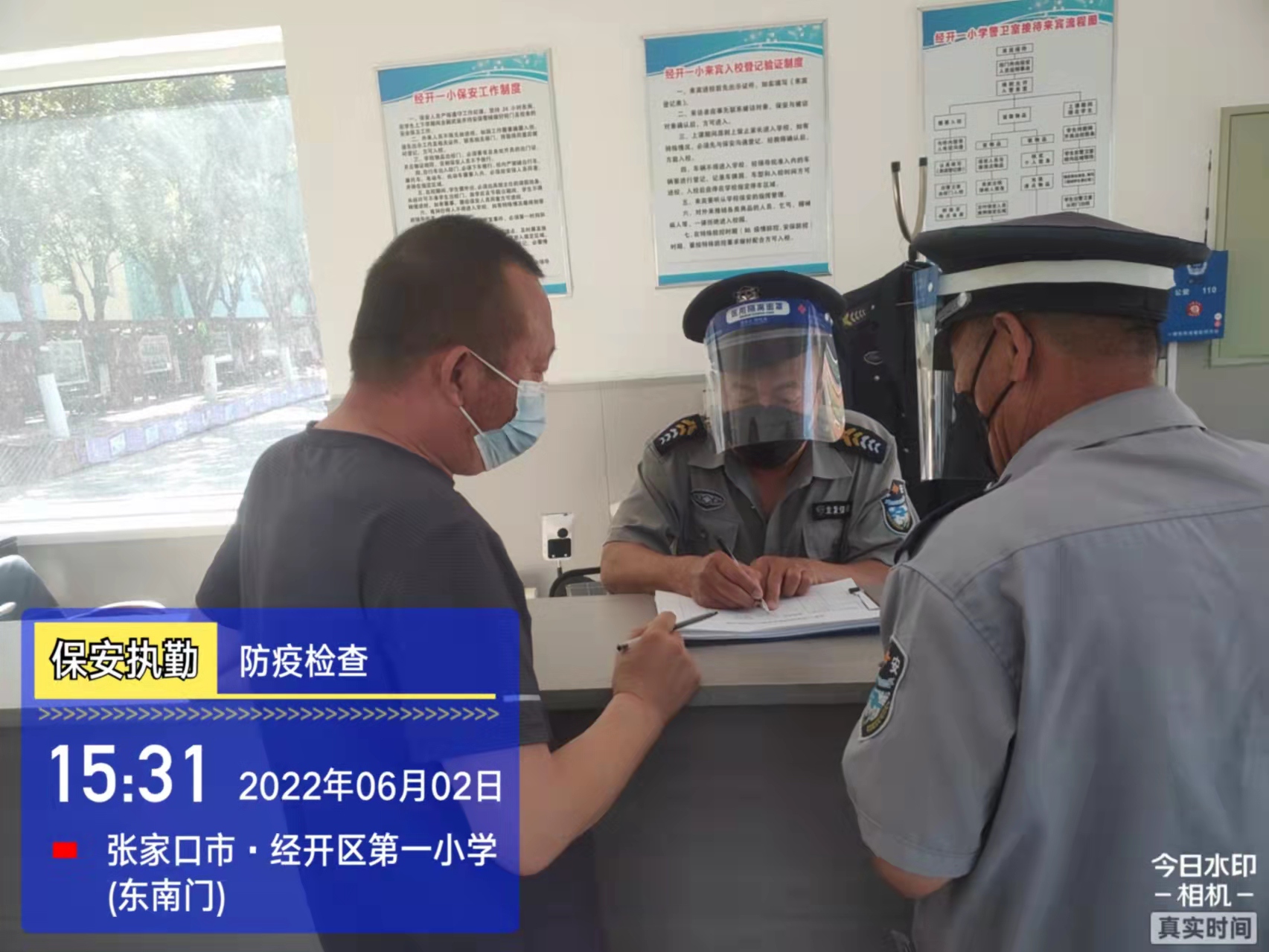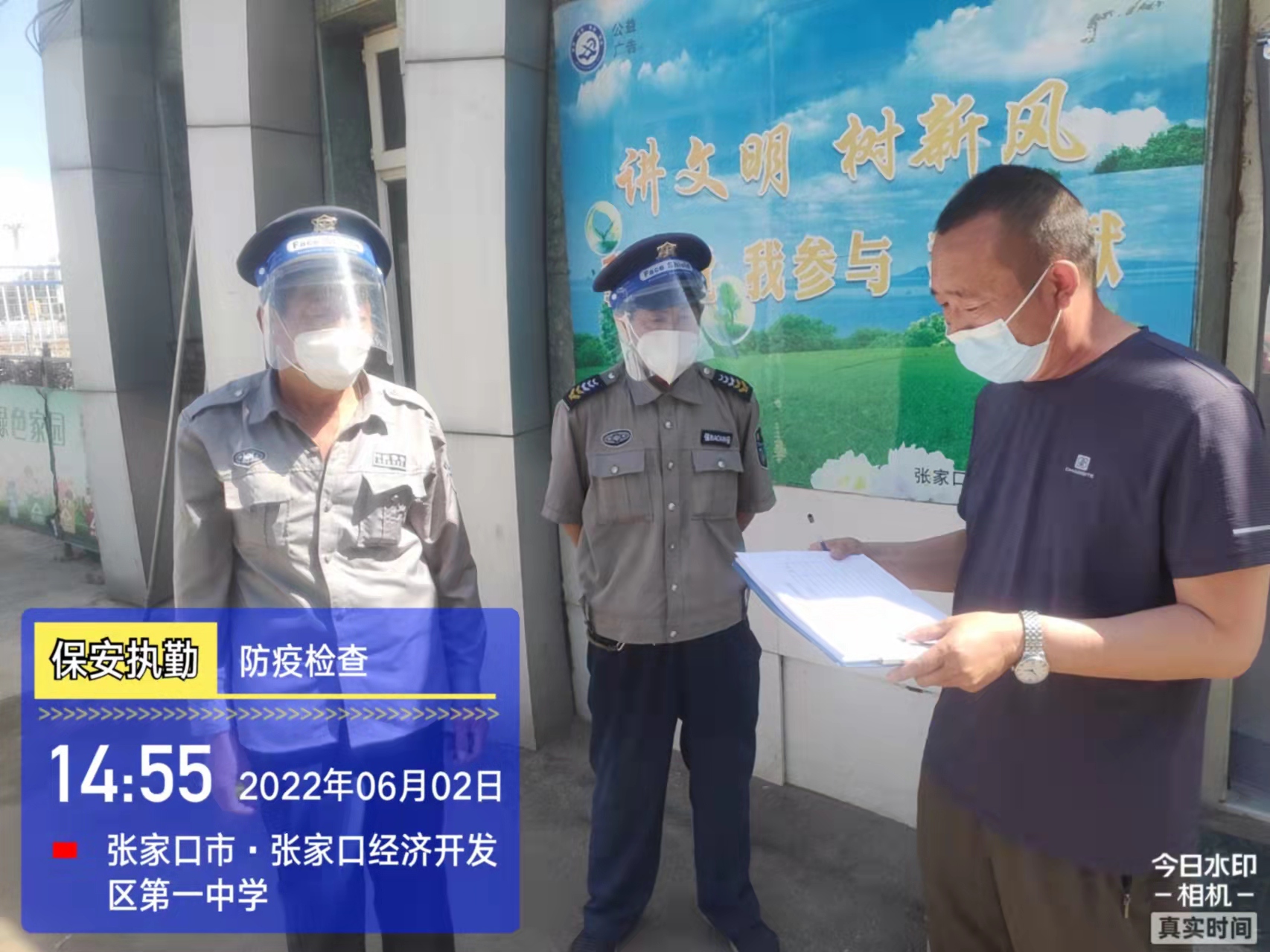會(huì)后,我公司迅速召開(kāi)“疫情期間學(xué)校門(mén)衛(wèi)安全防控工作要求”的會(huì)議,制定了校園安全防疫規(guī)定:疫情防控期間,校園保安隊(duì)員必須穿制服,規(guī)范佩戴“三件套”(防護(hù)隔離面罩、N95口罩、一次性PVC手套);進(jìn)出校園的師生必須測(cè)量體溫,外來(lái)人員需登記、測(cè)溫、掃碼(幸福張家口,呈綠碼)、且持7日內(nèi)核酸陰性檢測(cè)結(jié)果;保安室需保持干凈整潔,物品擺放有序,勤開(kāi)窗通風(fēng),定期噴灑消毒藥水。為此,公司特成立校園防疫檢查小組,由副經(jīng)理帶隊(duì),協(xié)同主管大隊(duì)長(zhǎng)對(duì)經(jīng)開(kāi)區(qū)所有中小學(xué)校安保崗位進(jìn)行防疫工作檢查,檢查期間,發(fā)現(xiàn)問(wèn)題,現(xiàn)場(chǎng)處理,并及時(shí)與校方領(lǐng)導(dǎo)溝通,杜絕同樣問(wèn)題再次出現(xiàn),確保校園防疫安保工作萬(wàn)無(wú)一失,為各校師生鑄就一道安全防線(xiàn)!